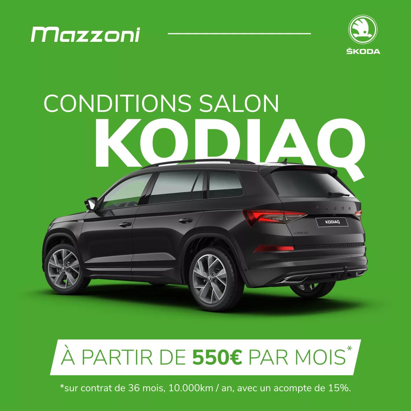 *Les offres présentées sont valables uniquement pour les particuliers à l’achat d’une nouvelle SKODA du 31 janvier 2023 au 27 février 2023 inclus. Offre réservée aux particuliers sur tous les véhicules neufs. Offres Private Lease calculées avec 15% d'acompte, kilométrage maximal par an : 10.000 km pour une durée de 36 mois. Sous réserve d’acceptation du dossier par Volkswagen D’Ieteren Finance s.a., Leuvensesteenweg 679, 3071 Kortenberg, prêteur, avec siège social à 1050 Bruxelles, rue du Mail 50. BCE 0841 046 715, RPM : Bruxelles, compte IBAN : BE 97 4829 0680 3149. info@vdfin.be Offre sous réserve d'erreurs et changements de prix. Offre AutoCredit = prêt à tempérament avec des mensualités fixes initiales et une dernière mensualité plus élevée sur maximum 48 mois au taux débiteur fixe de 4,99 %, proposé par Volkswagen D'Ieteren Finance s.a. Au moment de la signature de ce prêt à tempèrament, Volkswagen D'Ieteren Finance, par l'intermédiaire de sa filiale D'Ieteren Lease s.a. (Leuvensesteenweg 679 - 3071 Kortenberg - Belgique - RPM Louvain - BCE 0402623937) vous proposera une option de vente, par laquelle elle s'engage, à la fin du prêt et sous certains conditions, à racheter votre véhicule pour un prix équivalant à la dernière mensualité due en vertu du prêt à tempèrament et à verser ce prix à Volkswagen D'Ieteren Finance à titre de réglement intégral ou partiel de la dernière mensualité encore due. Offre réservée aux particuliers sur tous les véhicules neufs de la gamme du 31 janvier 2023 au 27 février inclus. Kilométrage maximal par an : 10.000 km et 15% d'acompte. Sous réserve d’acceptation du dossier par Volkswagen D’Ieteren Finance s.a., Leuvensesteenweg 679, 3071 Kortenberg, prêteur, avec siège social à 1050 Bruxelles, rue du Mail 50. BCE 0841 046 715, RPM : Bruxelles, compte IBAN : BE 97 4829 0680 3149. vdfin.be/contact. Ces données s’entendent sous réserve de toute modification des variantes de modèles possibles,de construction, d’équipement, de données techniques ou d’association et d’erreurs de prix ou de saisie.